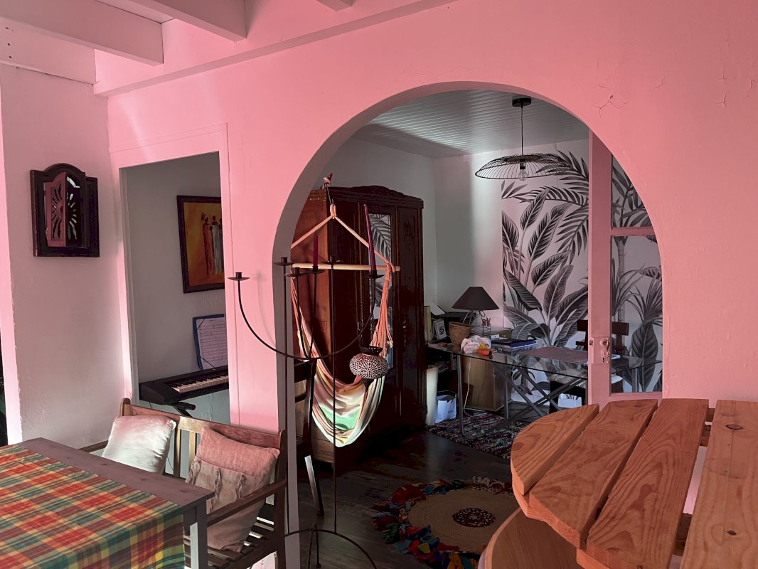 Elle se compose de la façon suivante : Au Rdc, Entrée style véranda, cuisine, salle d'eau, wc séparé, séjour, bureau chambre, et à l'étage, une autre chambre et grenier. Chauffage pompe à chaleur/clim neuve, et cheminée.