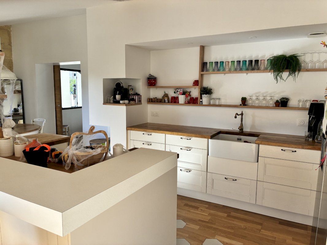 - Type : échoppe bordelaise T5-6, alliant charme de l’ancien (pierre bordelaise, poutres apparentes et parquet) et modernité (pas de travaux à prévoir/juste à poser vos valises).