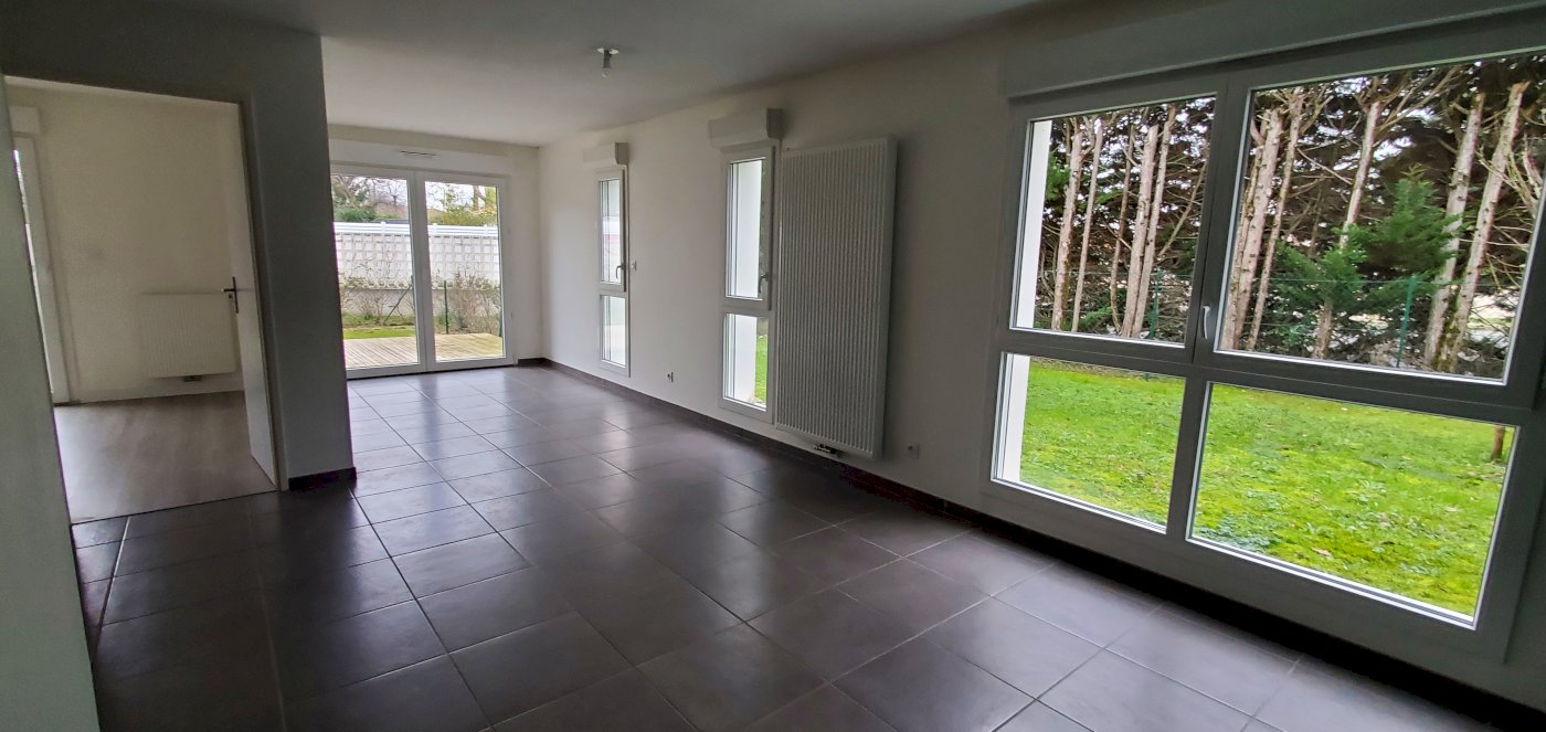 Les chambres et la pièce de vie donnent sur le jardin avec terrasse bois au calme et sans vis-à-vis de 60m². Volets roulants électriques.