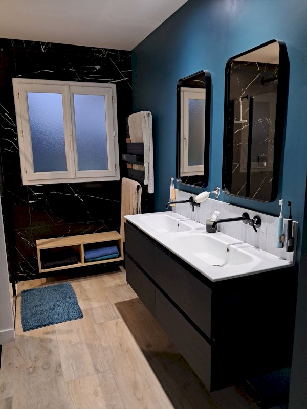 - Une partie nuit climatisée, avec couloir desservant une salle de bain refaite à neuve, un WC séparé et 3 chambres (de 14 m², 12 m² et 11 m²).