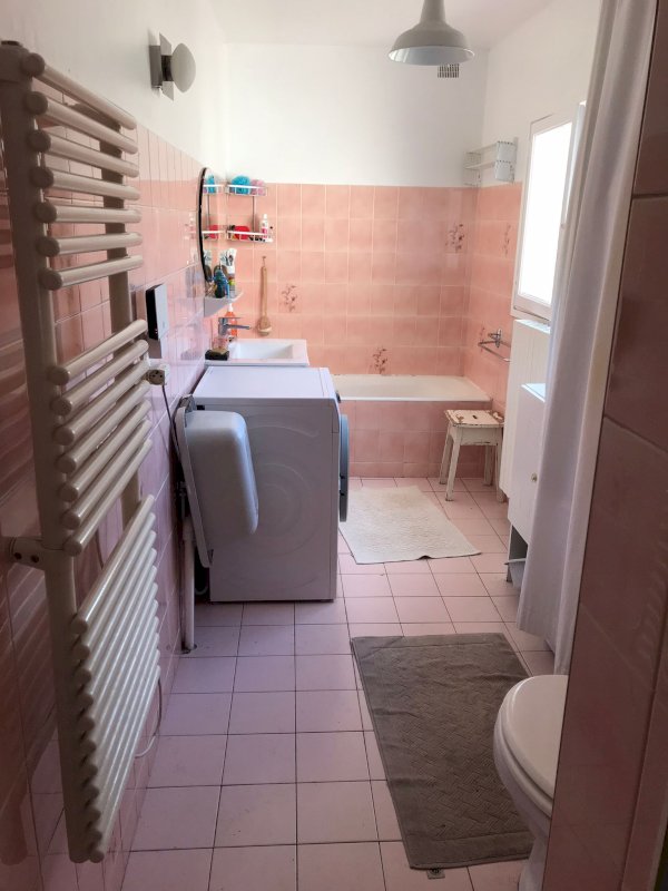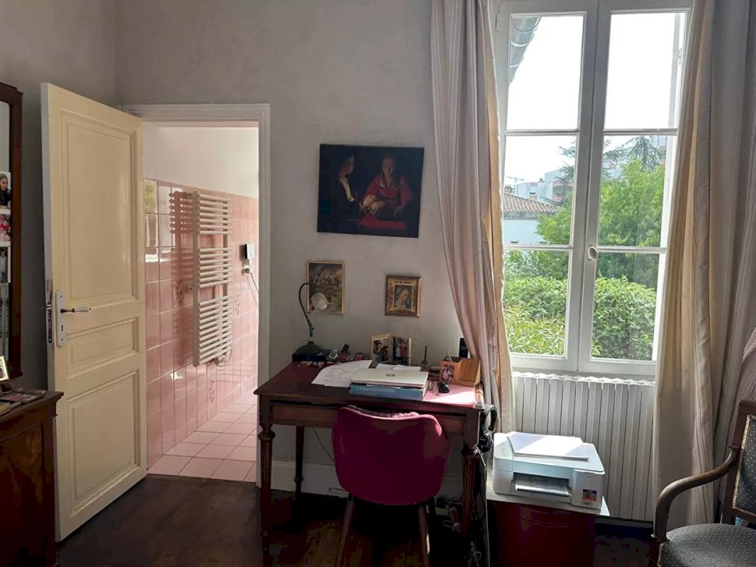 - A l'étage; 2 chambres dont 1 avec salle de bains privative avec WC côté jardin et une salle d'eau avec W.C coté rue. Dressing avec point d'eau et fenêtre, climatisation dans le couloir.