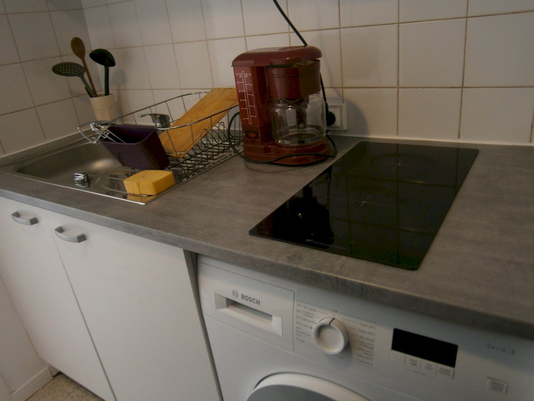 Ce studio est composé d'une entrée avec une kitchenette (avec plaques induction) : menant a une pièce a vivre avec un grand placard de rangement.