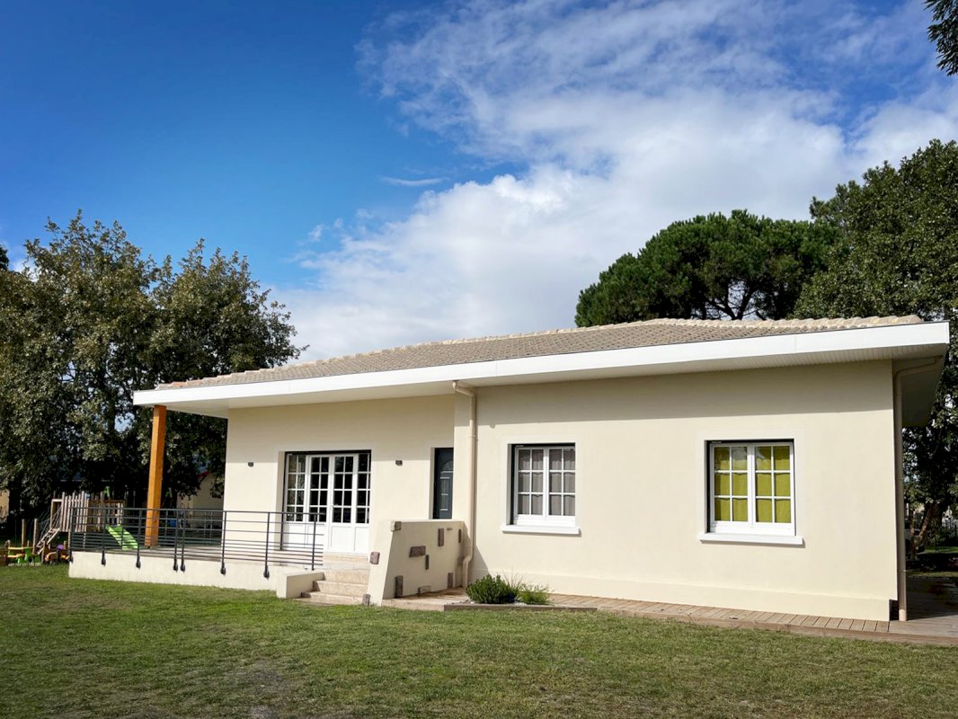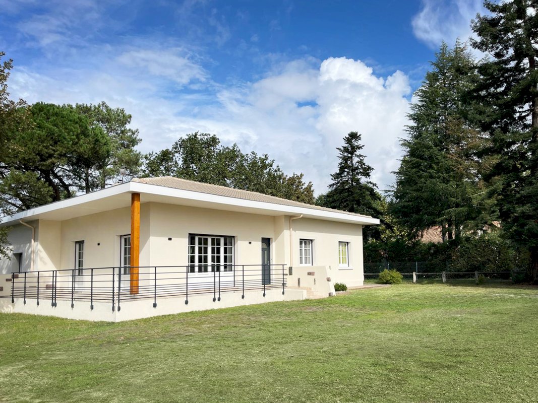 Maison plain-pied 132m² – 3 chambres + 1 bureau – Terrain de 1389m² – Cœur d’Ychoux