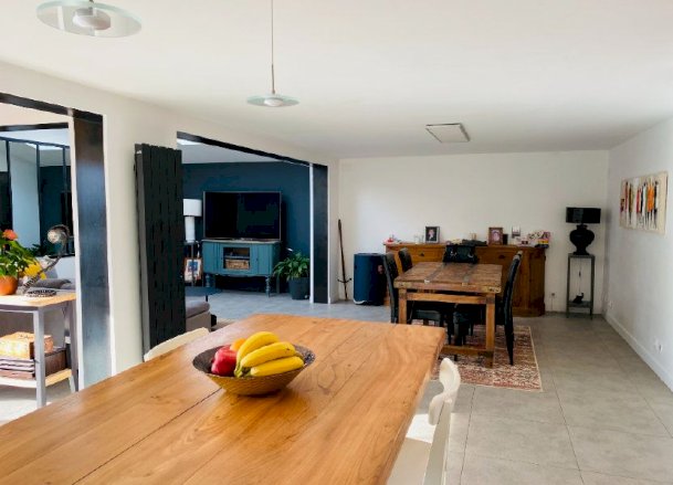 Cuisine ouverte sur salon/salle à manger d'un totale de 70m2 et une véranda de 35 m2.