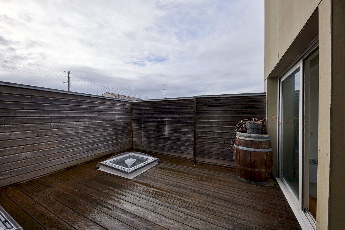 - 1 séjour avec une belle cuisine équipée d’accès direct à une terrasse intimiste.