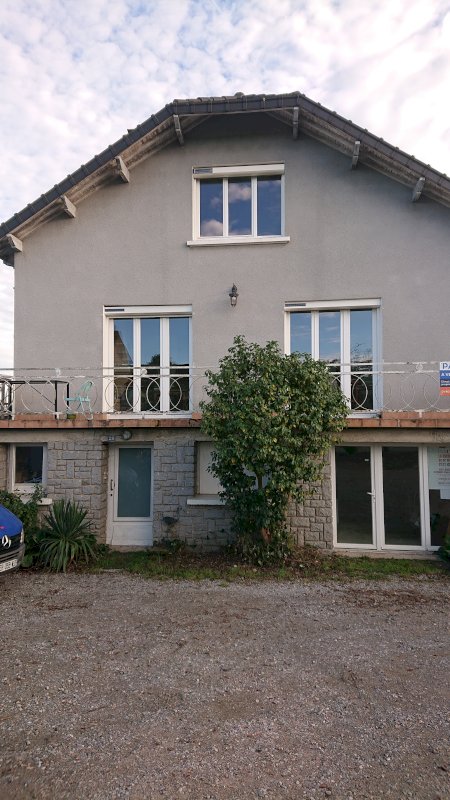 - Maison au 1er étage : 3 chambres, 1 cuisine aménagée et équipée, 1 séjour, 1 balcon terrasse.