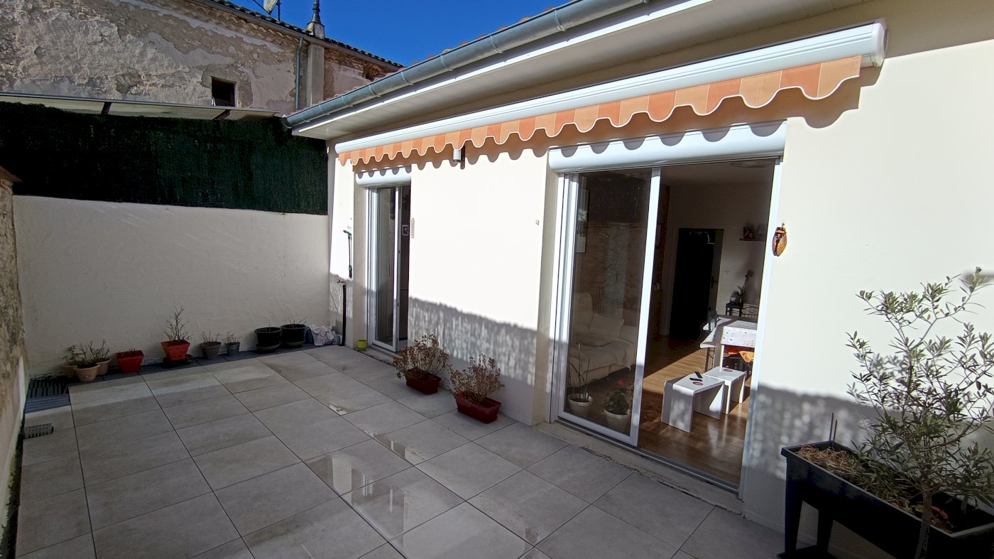 Donnant sur la cuisine et la salle à manger, une terrasse de 24 m² avec banne électrique recouvrant la presque totalité. Pas de vis-à-vis.