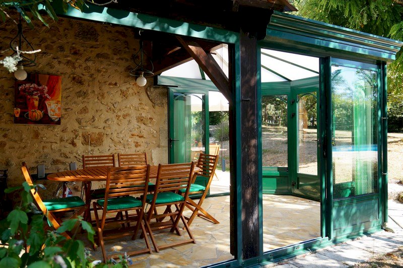 Garage pour voiture + petit garage pour entreposer du matériel, véranda, piscine 5 x 10 m, terrain clos de 2200 m².