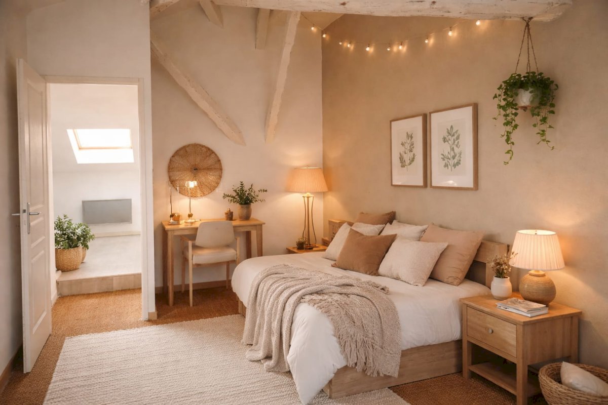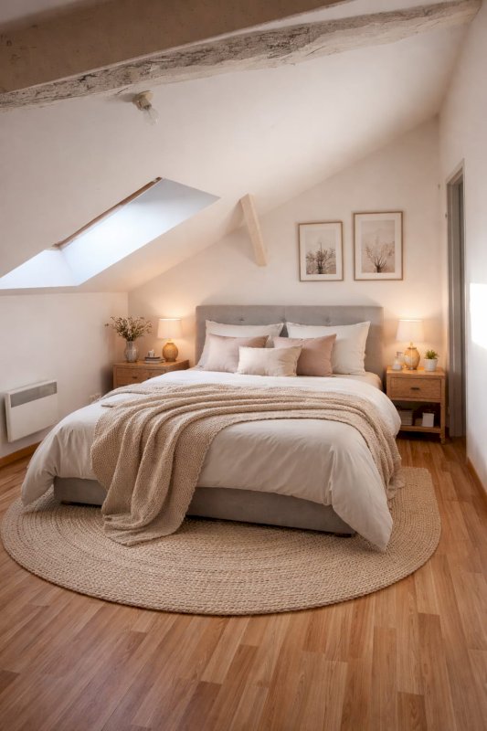 Il se compose : entrée, cuisine ouverte, salon, sdb et deux chambres pour une surface de 90 m² (dont 29 m² en dessous 1.80m).