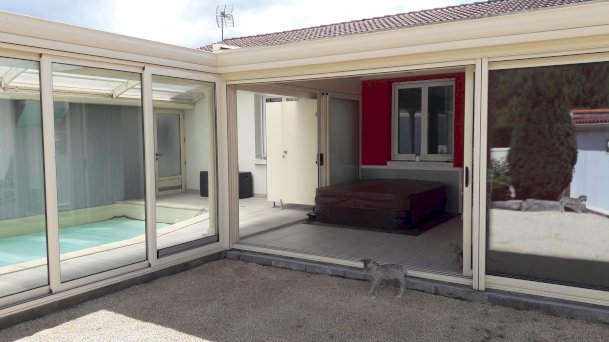 Très belle maison lumineuse et spacieuse qui se compose 1 entrée séjour de 47 m2, 1 cuisine équipée avec arrière cuisine, 1 salle d'eau et 1 wc, 2 chambres 1 suite parentale avec salle d'eau et wc, 1 dressing, 1 piscine intérieure de 8/3,50 m chauffée avec pac indépendante, véranda 26 m2 avec spa, attenant garage 34 m2 avec portail électrique, 2 garages non attenants dont 1 pour camping car, vide sanitaire H 1,90 m sur 2/3 de la maison, menuiseries alu et pvc double vitrage, chauffage au sol avec pac, chauffe eau solaire , panneaux photovoltaïques rapport 1400 euros