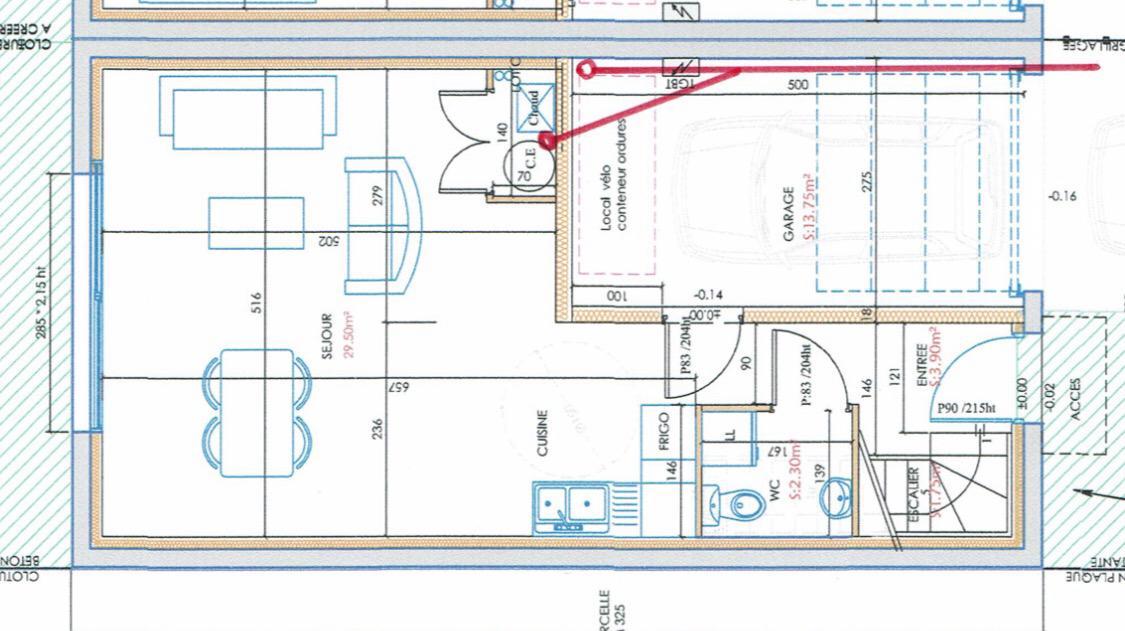 * Garage à vélos avec accès direct en façade (suite à la disparition du garage qui maintenant agrandit le salon. Travaux réalisés dans la légalité avec documents de l'urbanisme fournis)