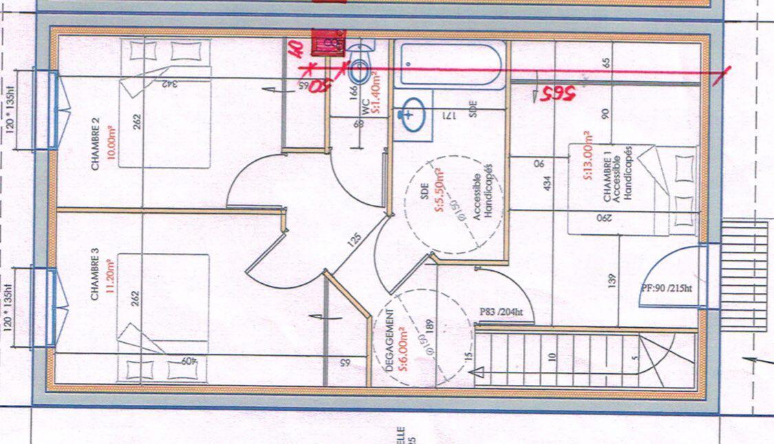 * 3 chambres de 13 m², 10 m² et 11,2 m² avec placards