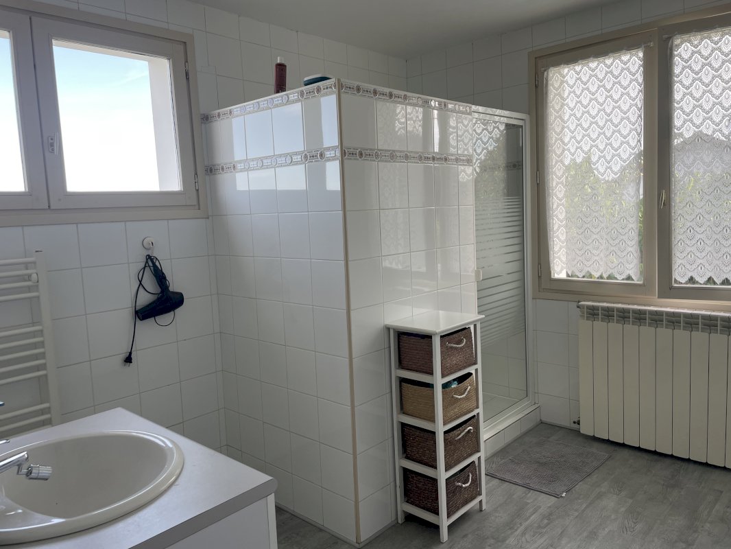 Elle se compose au rez de chaussée de deux chambres, d'une salle d'eau, un wc indépendant, un bureau, une cuisine lumineuse et d'un salon séjour donnant sur une terrasse. A l'étage se trouve trois grandes chambres dont une avec mezzanine, une salle d'eau, un toilette indépendant ainsi qu'un grenier.