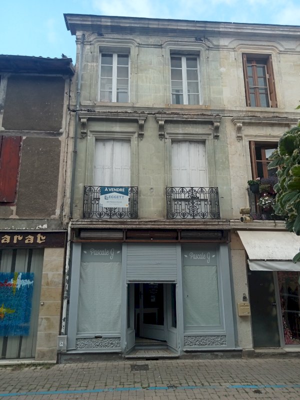 Immeuble en pierre avec local commercial avec 2 vitrines dans rue commerçante dans une bastide du 13° siècle hall avec 2 velux escalier en chêne WC et lavabo cuisine côté cour (10 m²).