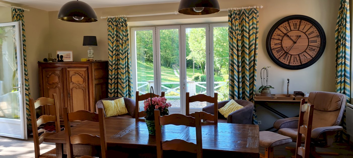 Un site unique. Au coeur du Parc Naturel du Périgord vert, propriété de 6 hectares, dont 2 ha de bois, traversée par une rivière sur 500 mètres dans un magnifique écrin de verdure. Une nature omniprésente avec diverses variétés d'arbres dont 2 séquoias centenaires, des rochers, un îlot, des cascades entourent une maison de maître de 415 m2. Egalement un cottage de 400 m2 divisé en 2 gites pour 14 personnes, 2 studios indépendants, 1 chambre d'hôte et 1 salle de conférence. Piscine couverte de 14 x 7 mètres, practice de golf, divers espaces de détente aménagés, canotage, terrain de pétanque. L'activité d'hébergement touristique (qui peut-être maintenue ou non) est exploitée à l'année. Elle est suivie par plus de 38000 personnes en réseaux sociaux. Points forts : Environnement exceptionnel sans vis à vis, très ressourçant. Qualité de l'air, Source d'eau potable (que nous consommons tous les jours) Construction neuve écologique en bois (pour les 2 studios et la salle de conférence) 18 Panneaux solaires sur la maison de maître et chauffage par géothermie. L’électricité non consommée est revendue via Enedis. Proximité de tous commerces et commodités à seulement 6 kilomètres (Super U, Intermarché, Lidl, Cinéma, centre de santé, lycée, collège, etc) Aéroport de Limoges à 1 heure, Bordeaux à 2 heures, Paris par Tgv à 2h30 heures. Potentiel commercial en pleine expansion Envoi davantage de photos sur demande.