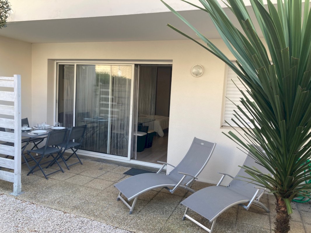 Rue Alienor d’Aquitaine, dans petite résidence calme de 7 appartements, au RDC joli studio cosy (T1 bis) de 26,76 m² rénové, avec terrasse et jardinet privatif arboré de 37 m².