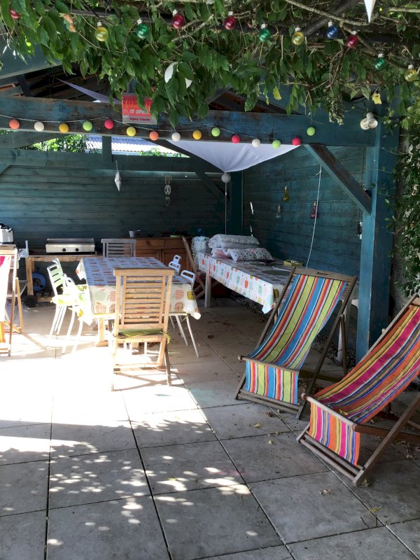 À l'extérieur : grands jardins devant et derrière la maison, avec piscine et terrasse couverte, auxquels s’ajoutent une annexe de 50m2 avec raccordement eau et électricité, et une allée pouvant accueillir au moins 3 véhicules.