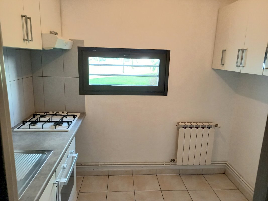 • 1 cuisine séparée avec fenêtre, plaque gaz, hotte aspirante, four et meubles bas et haut,