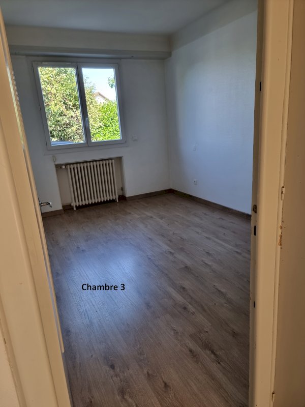- Au rez de chaussée : 1 entrée avec la cage d’escalier + 3 chambres avec placards + 1 salle de bains (douche et WC) + 1 grand garage traversant pour 2 voitures (et deux places de parking dans la cour devant la maison).
