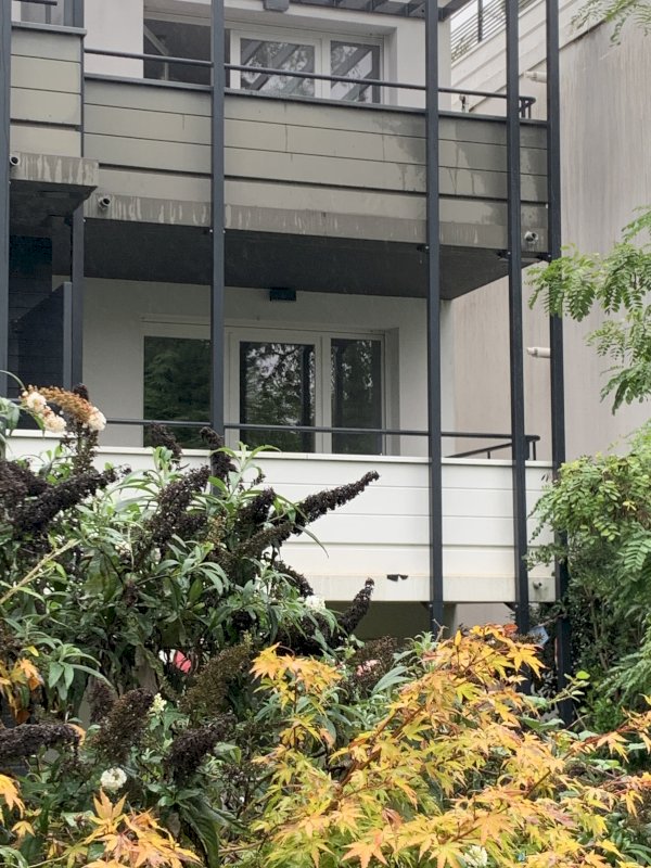 - Entrée avec placard, interphone, visiophone + Coin cuisine meublé (meubles hauts et bas avec évier, hotte, plaque vitro, un séjour lumineux avec grande baie(le tout sur 27 m²) donnant sur un balcon de 7m² exposé plein sud avec vue sur la verdure sans vis à vis.