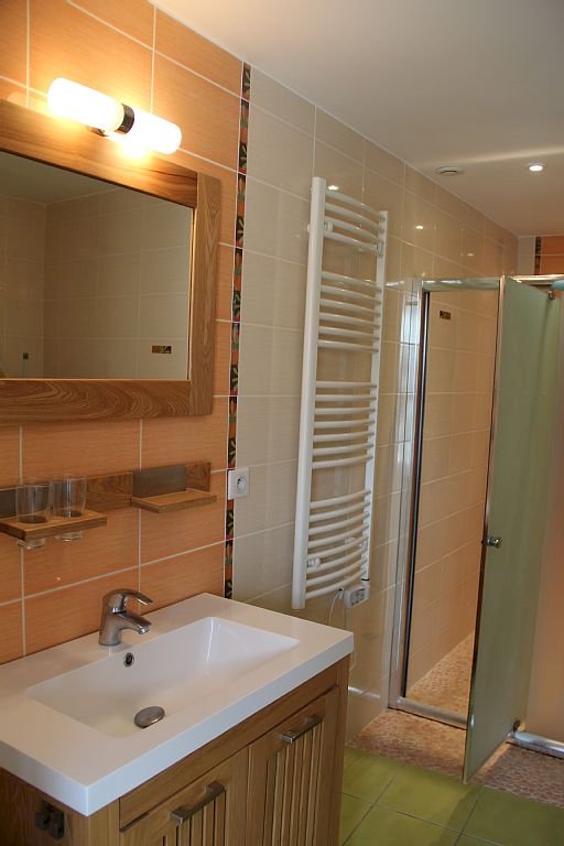 - Salle d’eau avec douche balnéo, WC, vasque, machine à laver et ballon d’eau chaude.