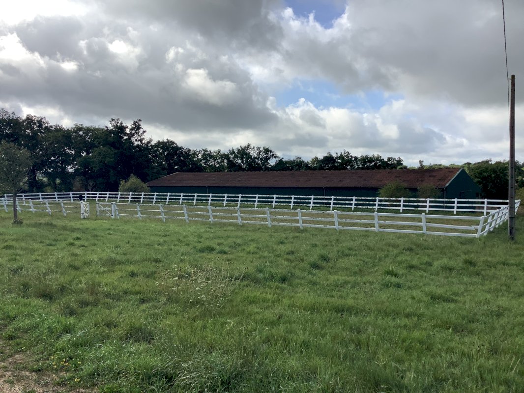 En dessous de la propriété 3 hectares clôturés entourent le manège olympique, la carrière et le rond de longe. Un étang se situe également aux abords de la propriété. Possibilité de rajouter 20 boxs le long du manège.