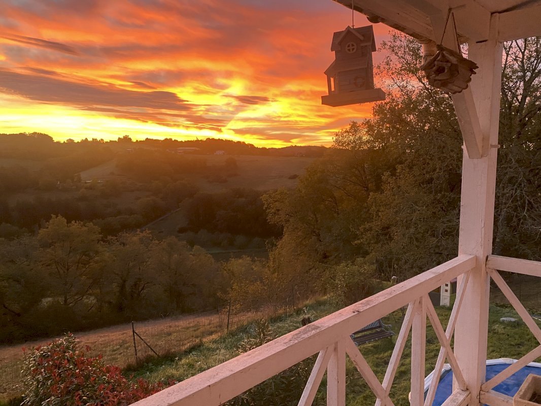 Promontoire sur la nature environnante protégée (Natura 2000 garantit l'absence de constructions alentours), cette maison des années 1980 vous offre une vue fantastique, un confort douillet (cheminée efficace, chauffages électriques basse consommation), une terrasse où il fait bon vivre, un kiosque idéal pour l'apéritif, un terrain (pentu) de peu d'entretien, une piscine hors-sol sur le paysage et un silence absolu (excepté le chant des oiseaux).