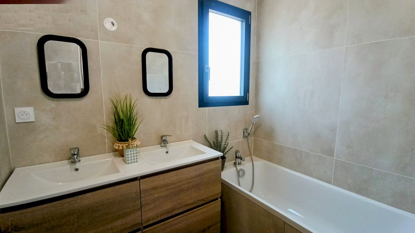 Bâtie en 2024, sans mitoyenneté, d'une surface habitable d'environ 100m², dans un quartier résidentiel et calme, elle comprend : une entrée, une vaste pièce de vie avec une cuisine entièrement aménagée et entièrement équipée, un espace nuit avec trois chambres, un bureau, une salle d'eau avec baignoire, double vasques et douche à l'italienne, un wc suspendu séparé.