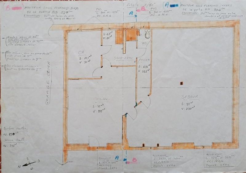 - Le plain pied est aménagé en grande cuisine, grande pièce de vie, chambre, SDB et wc.