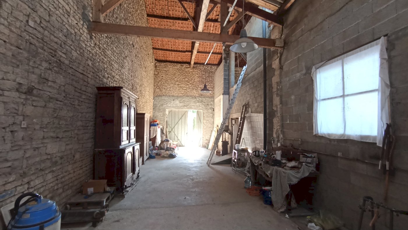 - Garage attenant et traversant (accès rue et second accès par jardin) de 155 m² avec grande hauteur.
