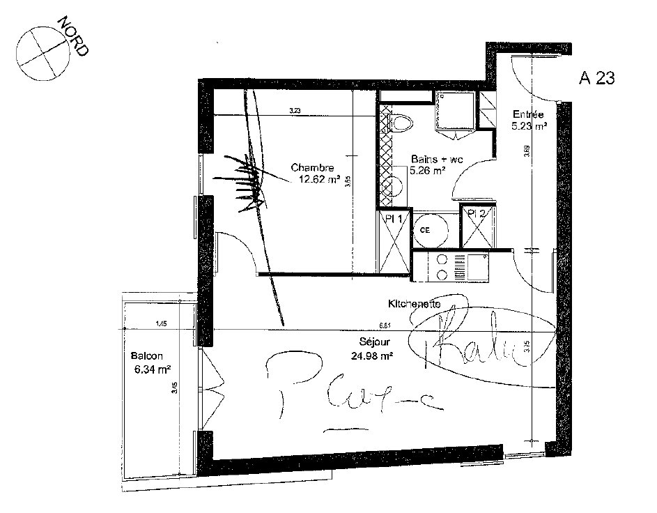 - Entrée avec placard : 5,23m²