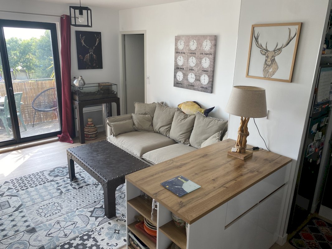 A VENDRE (sans frais d'agence), bel appartement spacieux type 2 situé au 2e et dernier étage d’une résidence BBC achevée en 2012 avec parking privé sécurisé. Il profite d’un séjour lumineux donnant sur un balcon orienté plein sud sans vis à vis, une cuisine aménagée, une grande chambre séparée, une salle d’eau avec WC et placards.