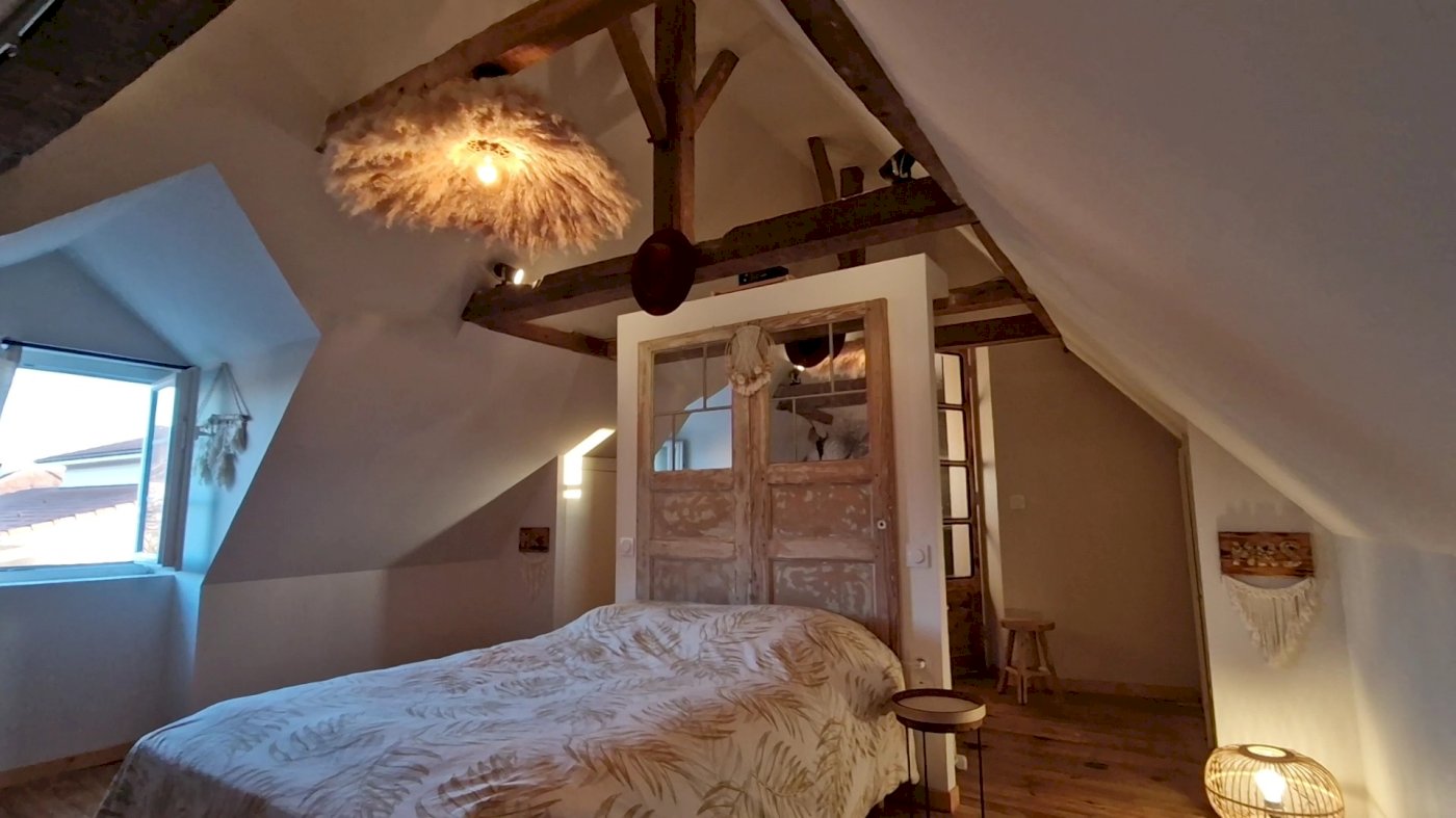 - A l'étage, une rénovation complète (pompes à chaleur, isolation, VMC, double vitrage) donne accès à 3 chambres spacieuses, dont 2 équipées de salle d'eau et une d'une salle de bain. WC commun, rangement dans le couloir et sur le palier un espace dédier à la détente.