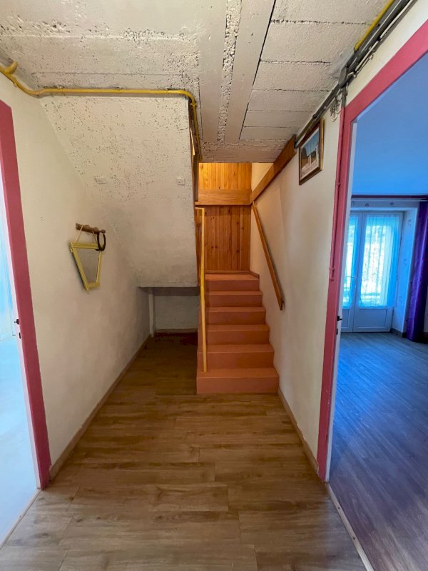 Elle comprend à l’étage ; un grand couloir qui dessert un salon/séjour lumineux avec insert + parquet, une cuisine aménagée avec carrelage, une chambre avec parquet et une chambre avec grand placard + parquet, une salle de bain avec une grande douche, des toilettes séparés ainsi qu'un débarras.