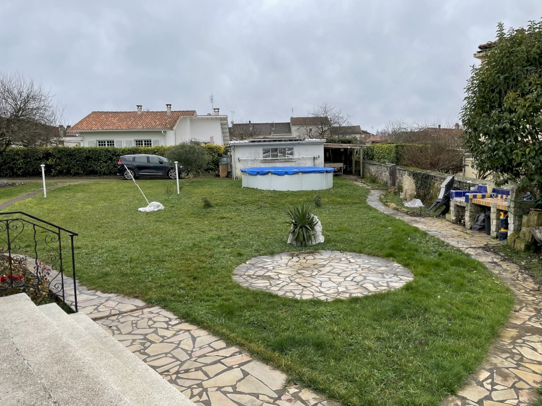 Une piscine en kit agrémente le jardin ainsi que un bassin a poisson.