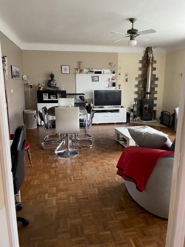 Maison des année 70 avec trois chambres, un grand salon salle a manger, cuisine, une salle d eau et wc en plein pied et garage deux voiture, possibilité de deux chambres en sous sol.