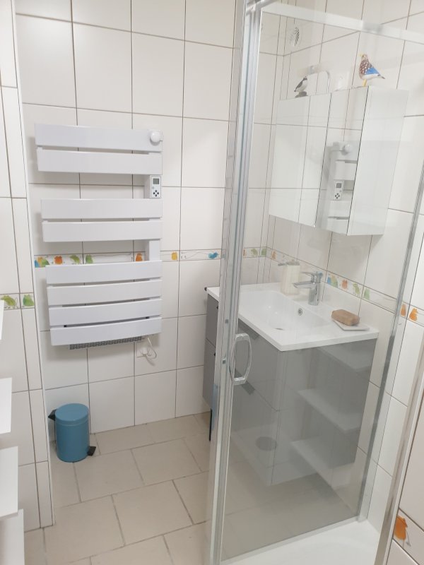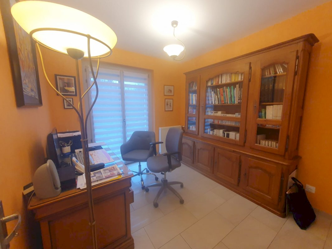 Au rez-de-chaussée un vaste séjour lumineux, 2 chambres et un bureau, une salle de bain avec douche et baignoire, un WC séparé et une cuisine toute équipée. L'ensemble sur 105 m² environ. Isolation des murs et du grenier en 2021.