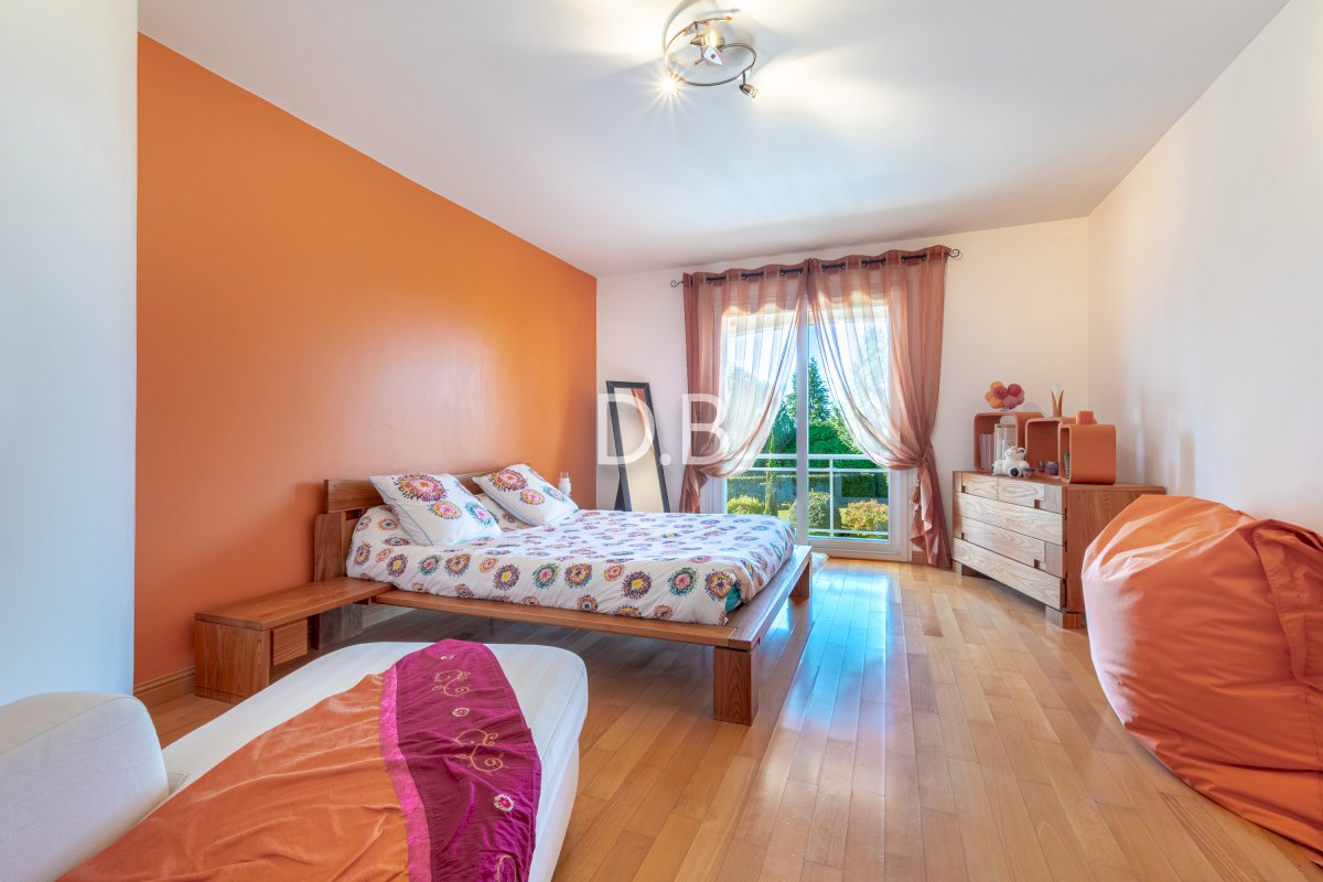 Dans le prolongement, en descendant 2 marches, vous pourrez profiter d'un salon de 26 m² idéal pour des moments de détente. Une chambre de 12 m² parfaite pour accueillir des invités ou pour un bureau.