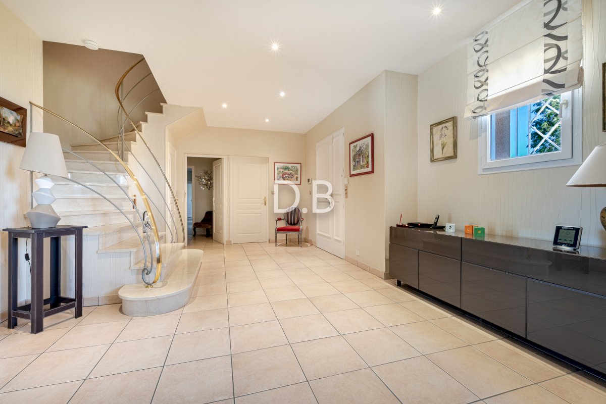 Entrée spacieuse de 25 m² avec un vestiaire et wc de 5 m², accueillante et lumineuse Magnifique escalier en marbre menant à la partie jour détente.