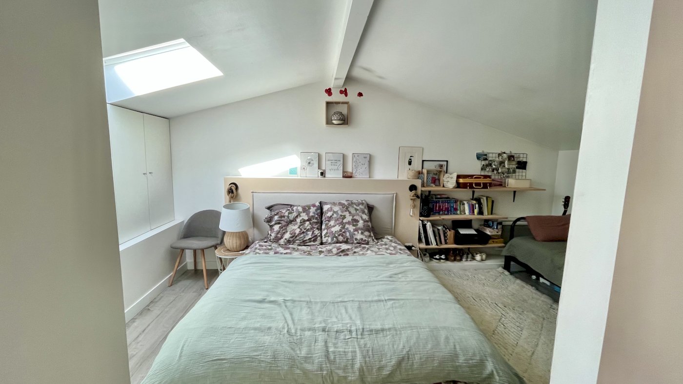 • L’étage dispose d’une belle suite parentale de 22 m², composé d’une grande chambre avec dressings aménagés sur tout un pan de mur (possibilité d’exploiter le mur parallèle également) et d’un salle d’eau spacieuse, avec rangements.