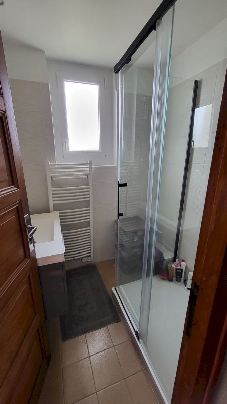 2 chambres dont 1 avec placards encastrés, salle d'eau avec douche.