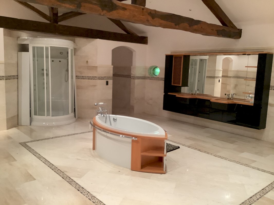 La maison d’habitation se compose au rez-de-chaussée de chaussée d’une cuisine américaine, d’un WC et d’une douche ainsi qu’un bureau. À l’étage 1 chambre de 50 m2, une salle de bain de 70m2, un dressing.