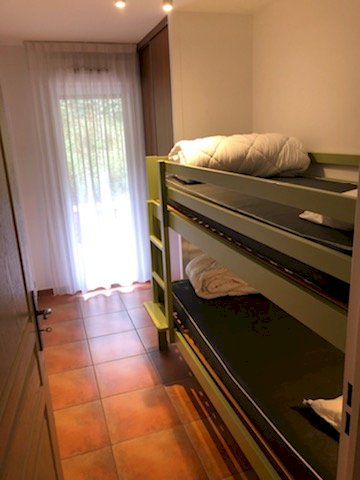 Une chambre plus un coin lit avec lit superposé, terrasse de 14 m², séjour cuisine, une place de parking en sous-sol.