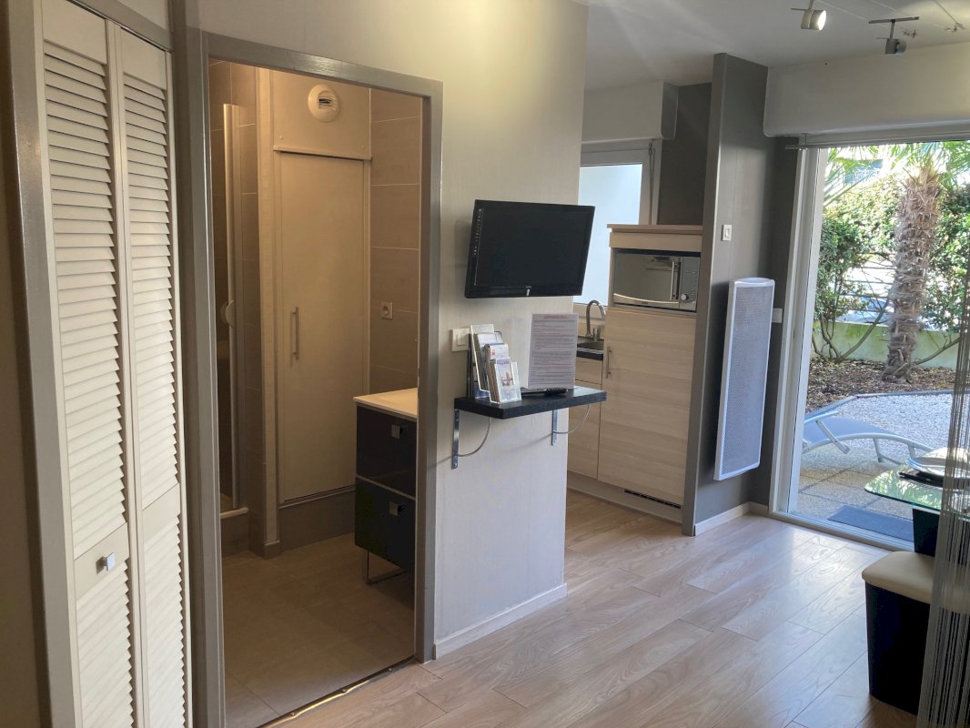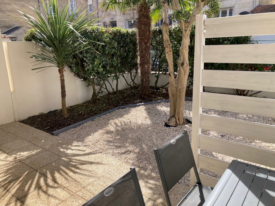 Rue Alienor d’Aquitaine, dans petite résidence calme de 7 appartements, au RDC joli studio cosy (T1 bis) de 26,76 m² rénové, avec terrasse et jardinet privatif arboré de 37 m².