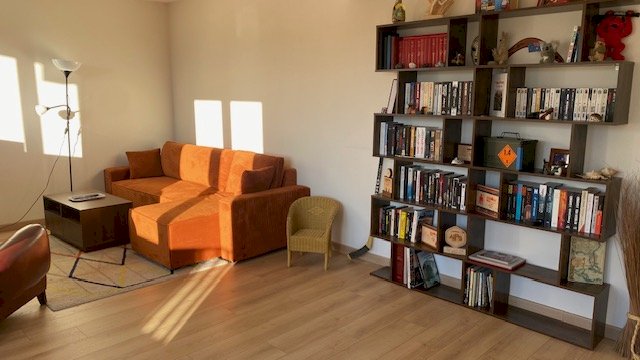 68 m² + 8 m² de balcon donnant plein sud (soleil toute la journée).