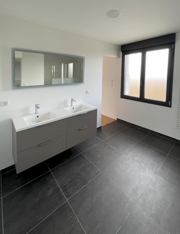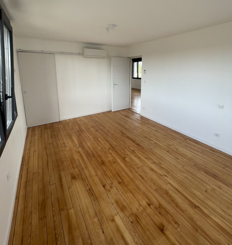 La chambre parentale de 14m² plancher bois d'origine et son accès direct à la salle d'eau de 9m², équipée d'une grande douche à l'italienne d'un meuble double vasque et son grand miroir anti buée et le WC séparé de 4m² ne vous fera pas vous sentir à l'étroit.