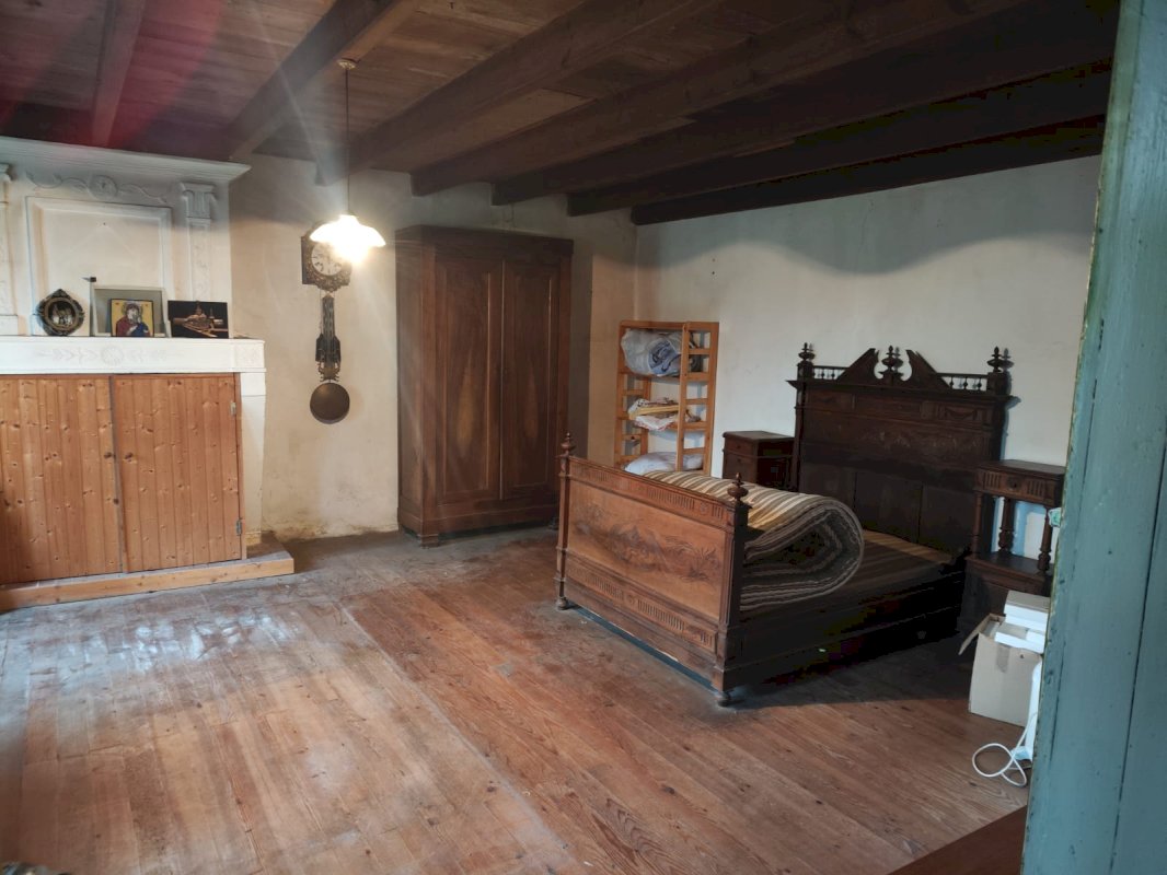 Maison girondine sur 2 niveaux, 3 grandes pièces principales, poutres apparentes, cuisine avec patio, salle d'eau, buanderie, cellier, bibliothèque.
