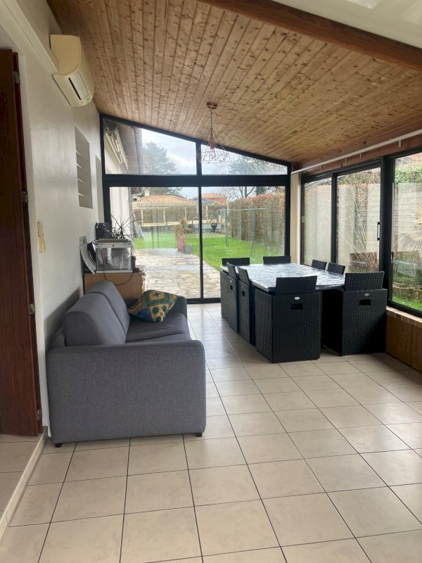 A cela s'ajoute une véranda avec climatisation et volets déroulants de 22,35 m². Un garage attenant de 26,5 m² avec rochelle pour davantage de rangement ainsi qu’une cave saine en sous-sol.