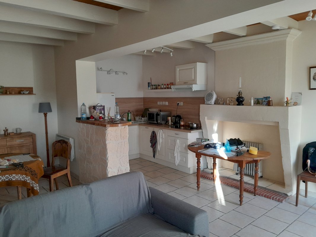 Vente maison : Dans hameau à 700m du bourg de Corme-Royal muni de nombreux commerces, à 12 km de Saintes, maison charentaise rénovée en partie basse sur 83 m² : Entrée, séjour avec cuisine ouverte aménagée, salle eau avec douche italienne et wc, chambres 1 et 2 ou bureau. Garage avec mezzanine, grand grenier double exploitable sur 85 m².