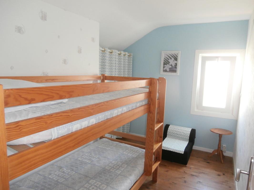 - A l'étage 1 palier et 2 petites chambres. Une de 9 m² avec penderie, lavabo et WC et une de 8 m² avec penderie. Parquet au sol.